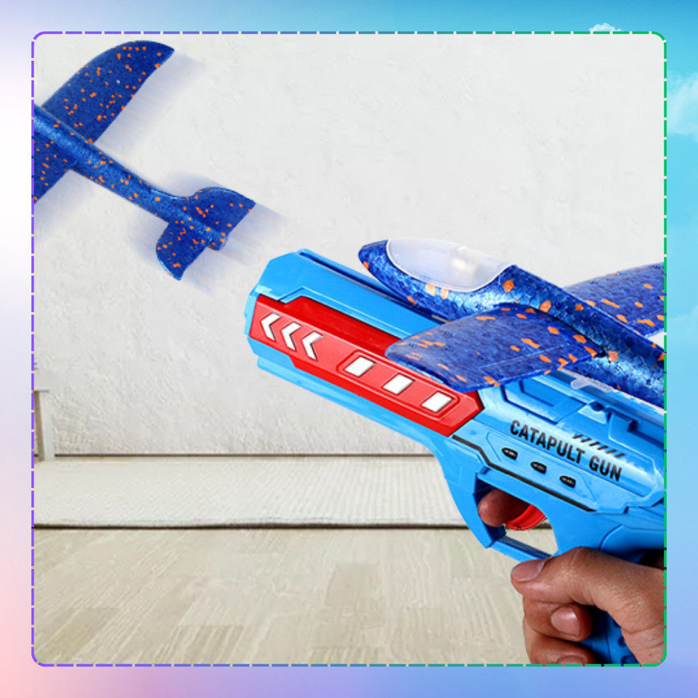 • Látványos repülések kilövővel – A repülőgép a mellékelt kilövőpisztoly segítségével a magasba indítható. Egyszerűen helyezze a repülőgépet a megfelelő helyre, állítsa fel a felhúzást, és lőjön! Így sokkal messzebbre és látványosabban repül, mintha kézzel indítaná. A fegyver erős műanyagból készült. ??