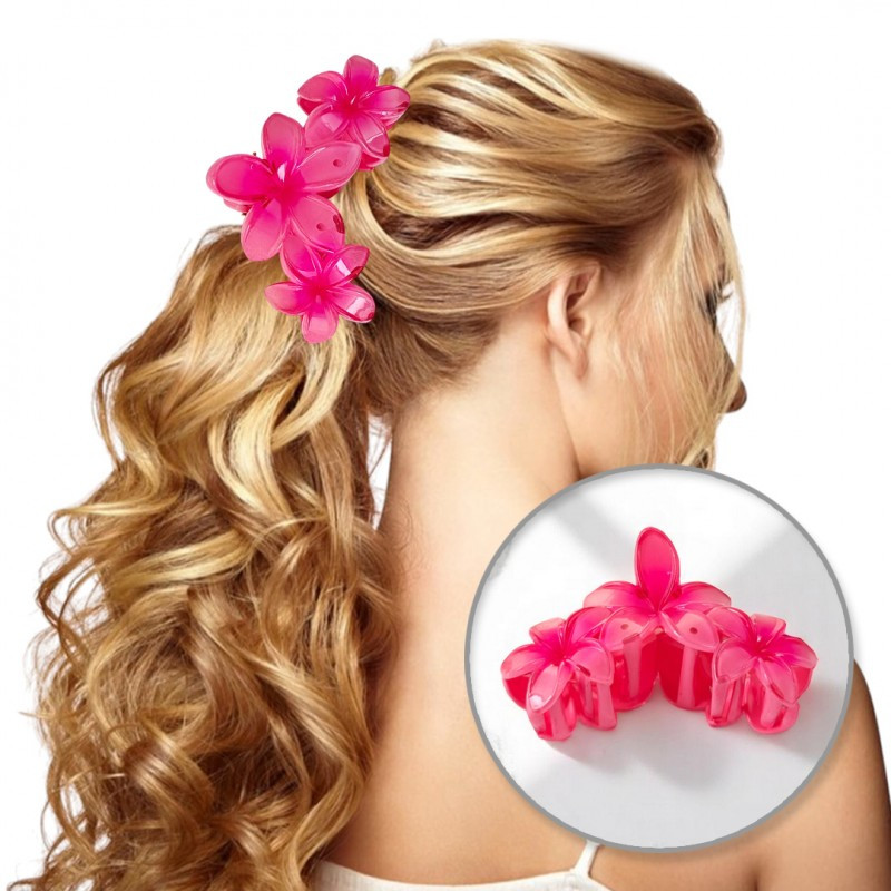 Hajcsat, nagy XL, hármas virág, rózsaszín, 7 x 11 cm, SP386