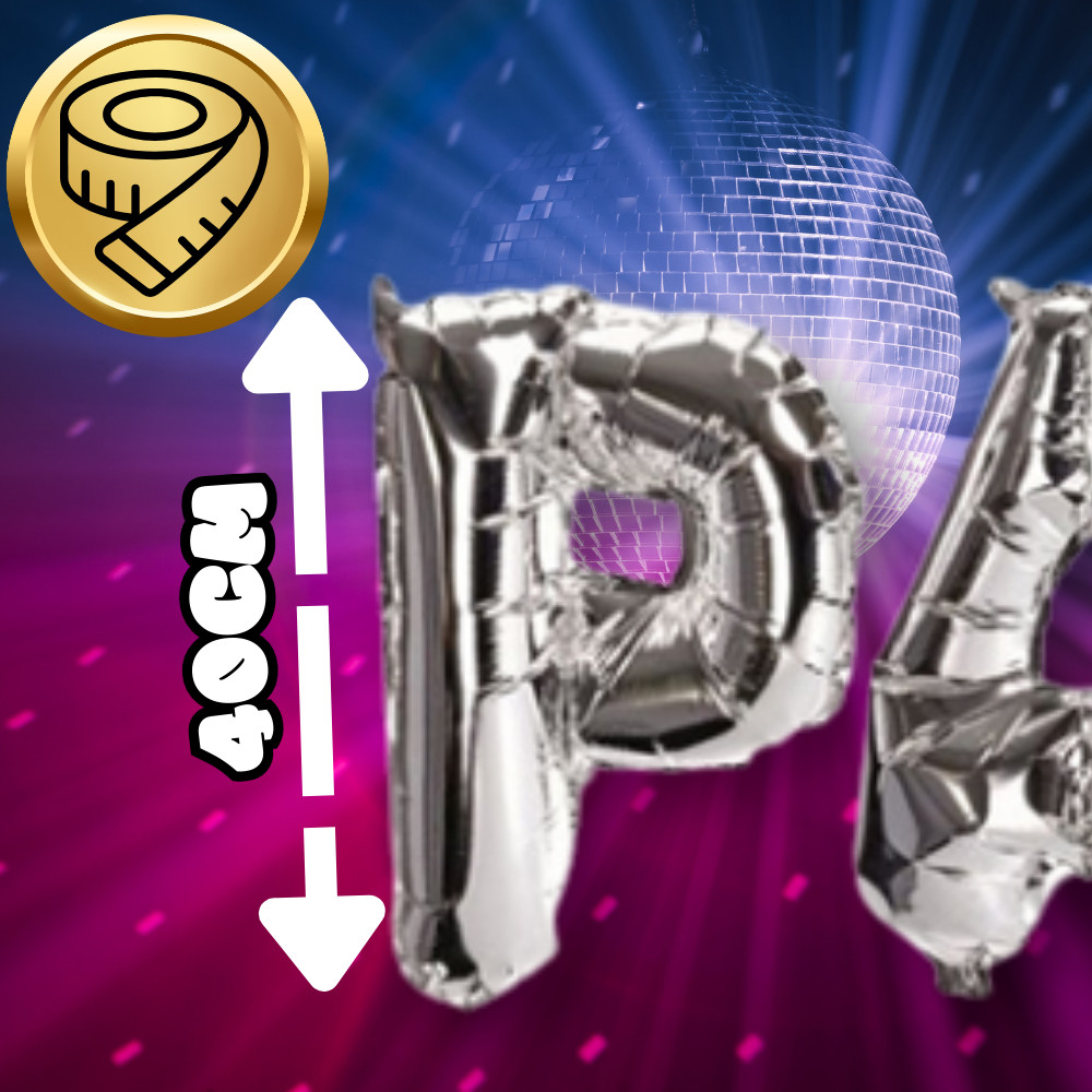 ✅Nagy, ezüst színű parti lufi. Nagy, betű alakú fólia lufik, 40 cm magasak, Party felirattal, a lufik lógó szemekkel rendelkeznek. Bármilyen parti, születésnap, szilveszter, esküvő, évforduló stb. díszítésére. 7 méteres akasztózsinórral érkezik.