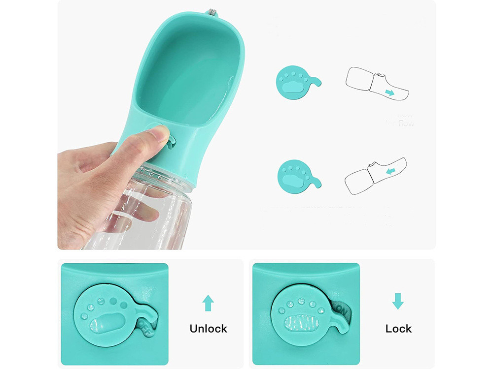 Palackunk tökéletes társ sétákhoz, túrákhoz vagy autós utazásokhoz. A beépített tálnak köszönhetően kutyája soha nem fog kifogyni a friss vízből, és Ön elkerülheti az extra tartályok vagy tálak cipelését.