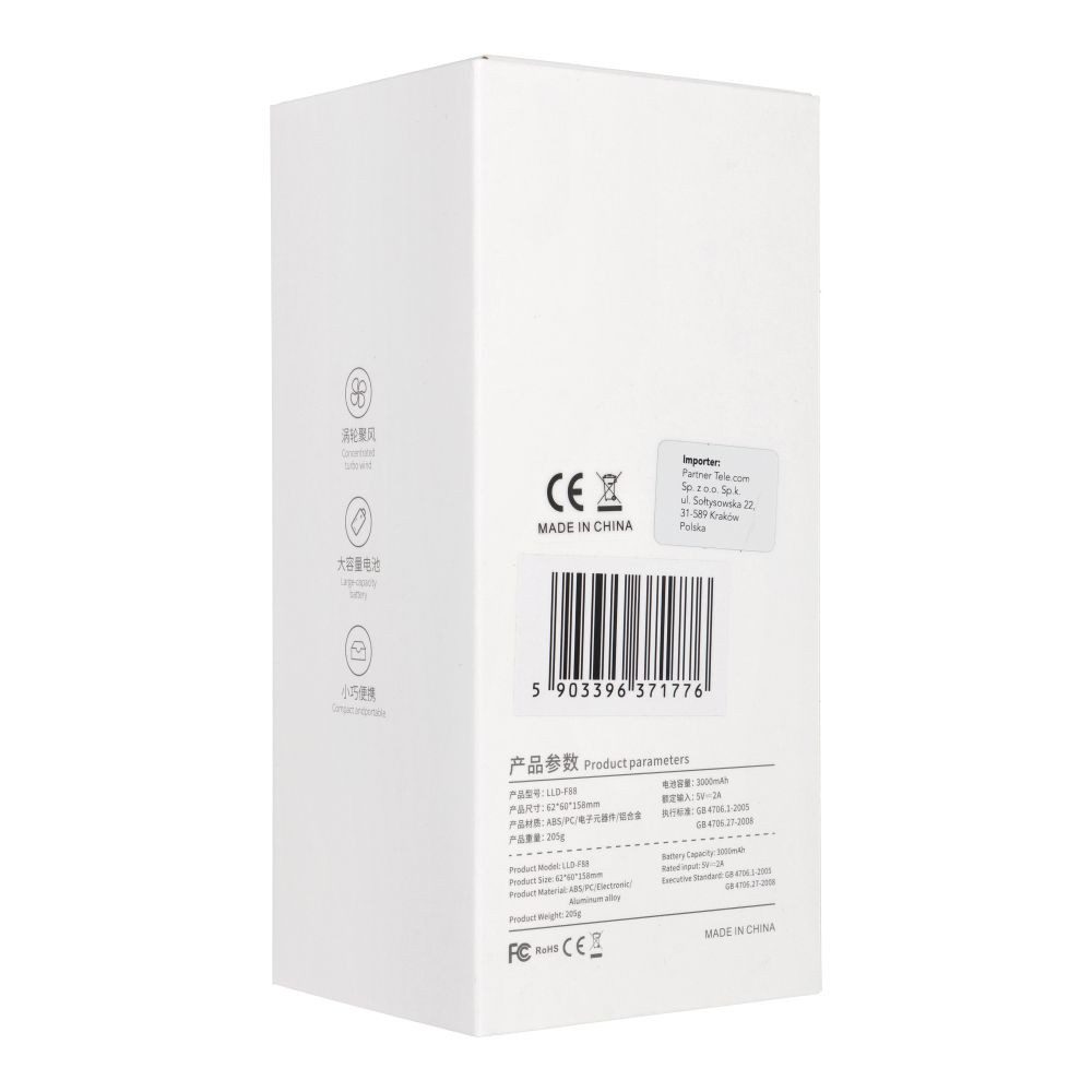 Egy 3000 mAh-s akkumulátorral működik, amely a Type-C porton keresztül tölthető, és egyetlen töltéssel akár 3 órán át is működik. Masszív felépítésének és könnyű súlyának köszönhetően tökéletes utazáshoz és mindennapi otthoni vagy irodai használatra egyaránt. Legfontosabb jellemzők: Egyenletes légáramlás szabályozás - akár 100 beállítási szint Erős légáramlás - hatékony hűtés még meleg időben is Kompakt méret - könnyen bárhová magaddal viheted Gyors töltés - C típusú csatlakozó