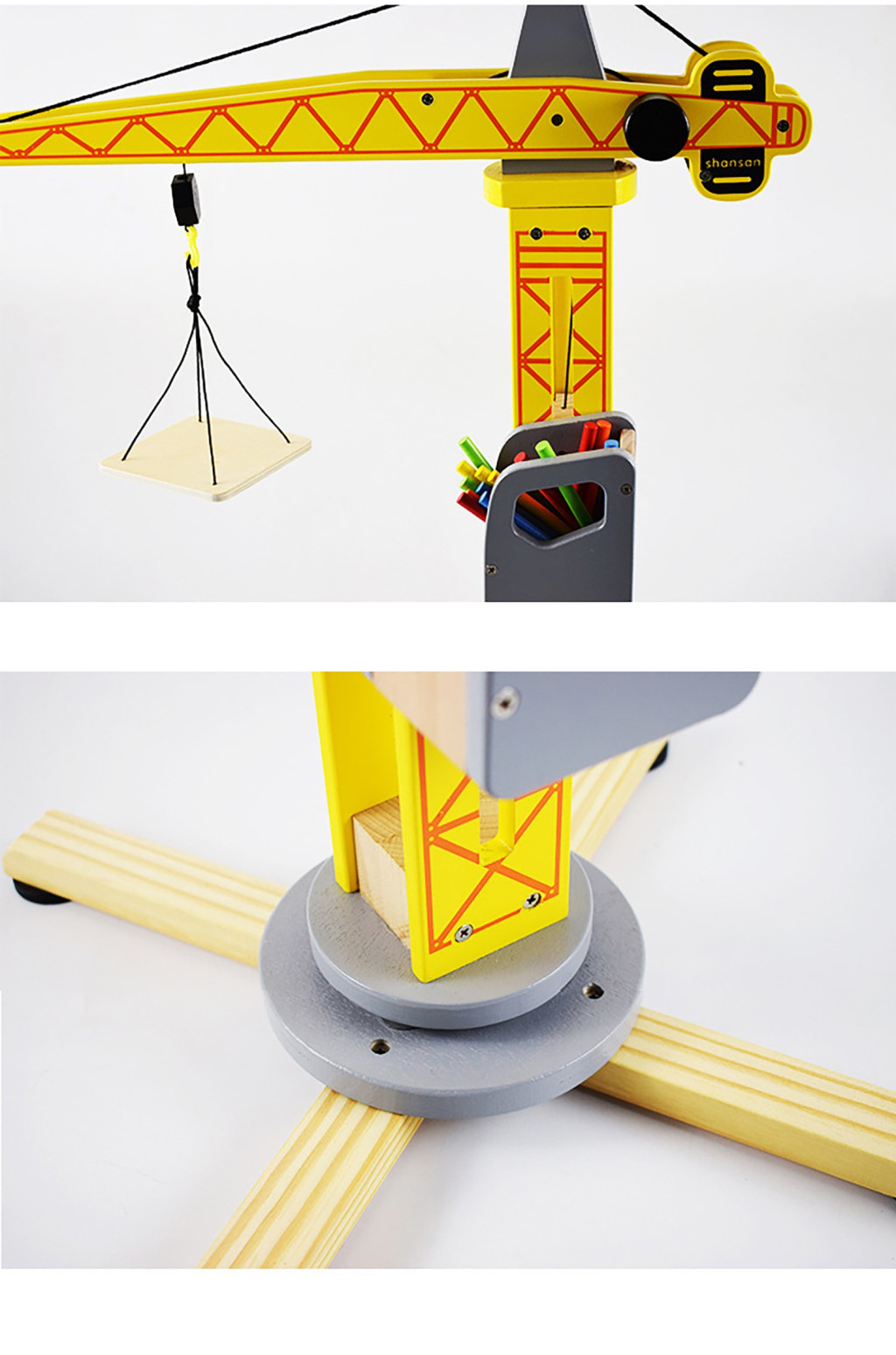 Ez a elképesztő és lenyűgöző fa darunk nagyszerű játék lesz gyerekeknek és felnőtt építőipari rajongóknak. A legmagasabb minőségű fából készült daru biztosan kielégíti még a legigényesebb kis építők elvárásait is.