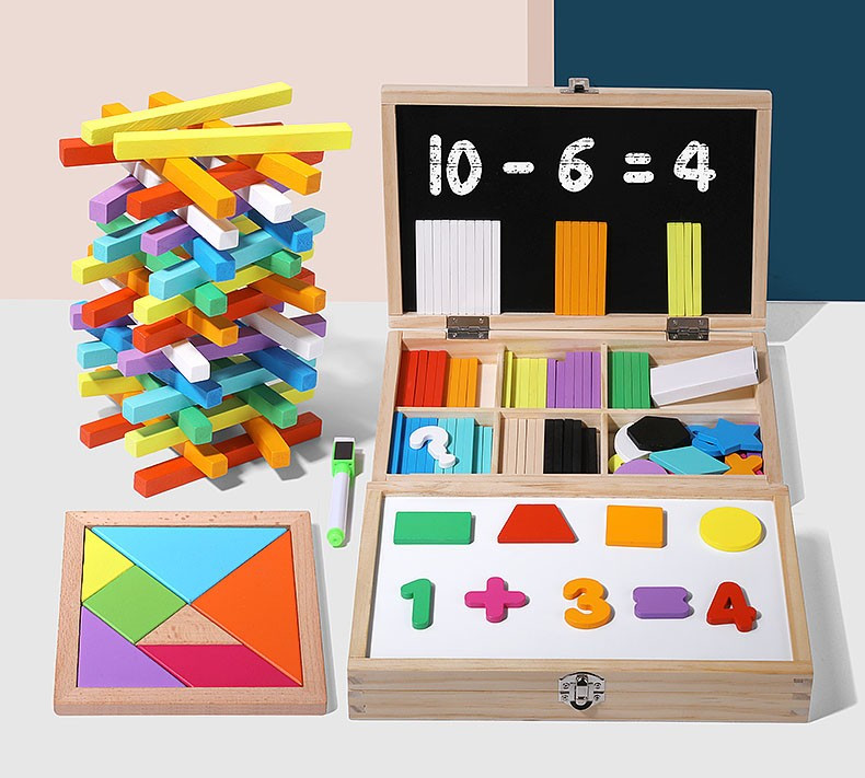 Egy nagyméretű, bőröndben elrendezett tábla alakú matematika- és rajzolókészlet egy nagyon sokoldalú tanulási segédeszköz azoknak a gyerekeknek, akik most kezdik el ismerkedni az oktatással.
