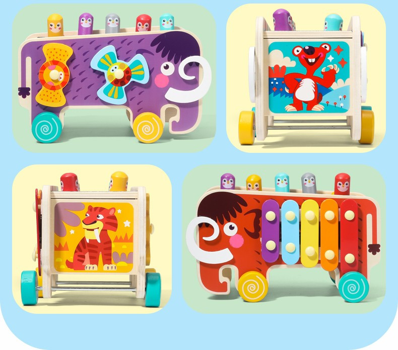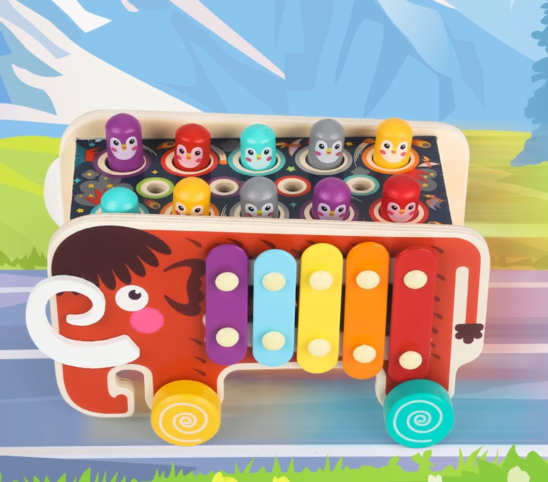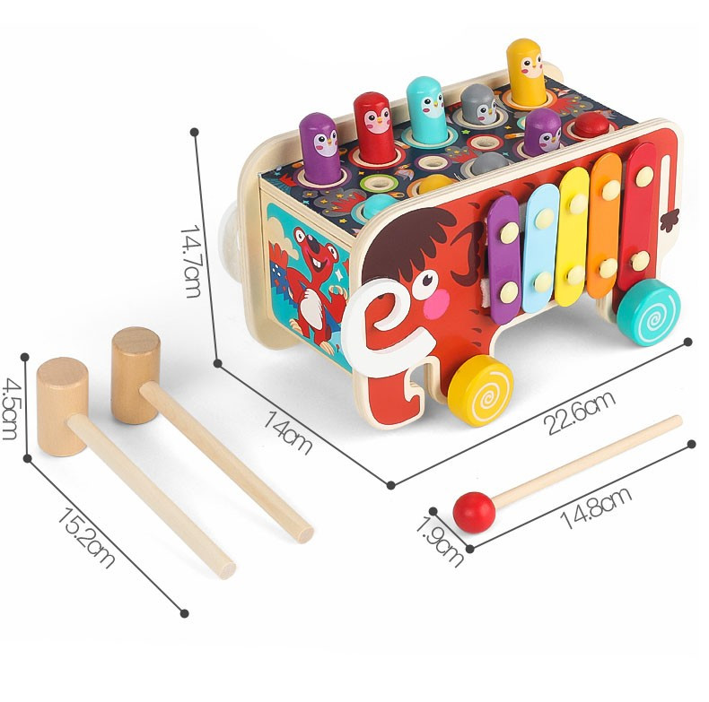 Jhtoy-561 kerekes játék mamut lyukasztóval, válogatóval és xilofonnal
