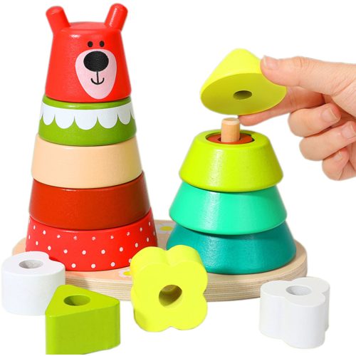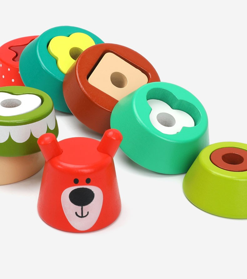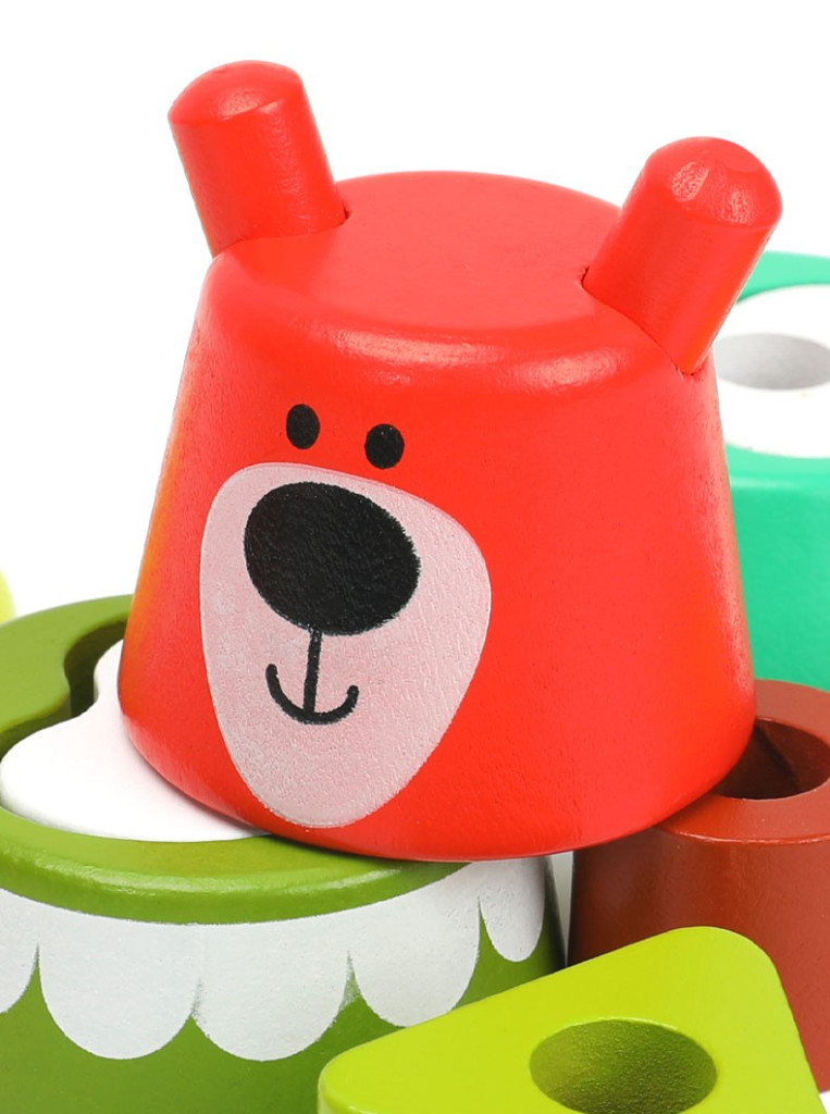 A színes, fából készült, fából készült, egymásra rakható Plüssmackó kiváló játék, amely fejleszti a motoros készségeket, javítja a kéz-szem koordinációt, a türelmet és a koncentrációt.