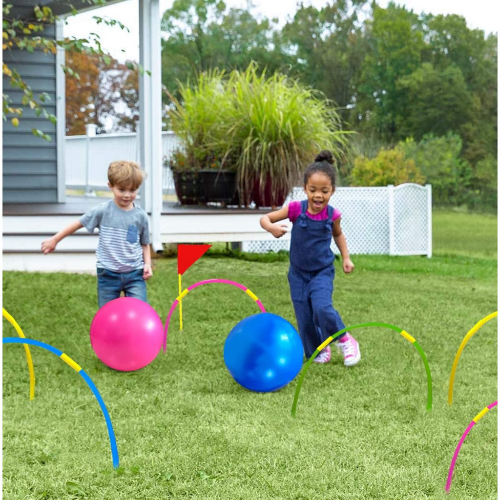 A vidám színek vonzzák a figyelmet és játékra ösztönzik, különösen a legfiatalabb résztvevők körében. A készlet elemeinek élénk, intenzív színei vizuálisan vonzóbbá és könnyebben észrevehetővé teszik a játékot a környezetben, így könnyebb a szabadban játszani. Ezenkívül a színes elemek vidám jelleget kölcsönöznek a készletnek, hangsúlyozva annak szabadidős és családi jellegét, így tökéletesek különféle szabadtéri rendezvényekre és összejövetelekre.