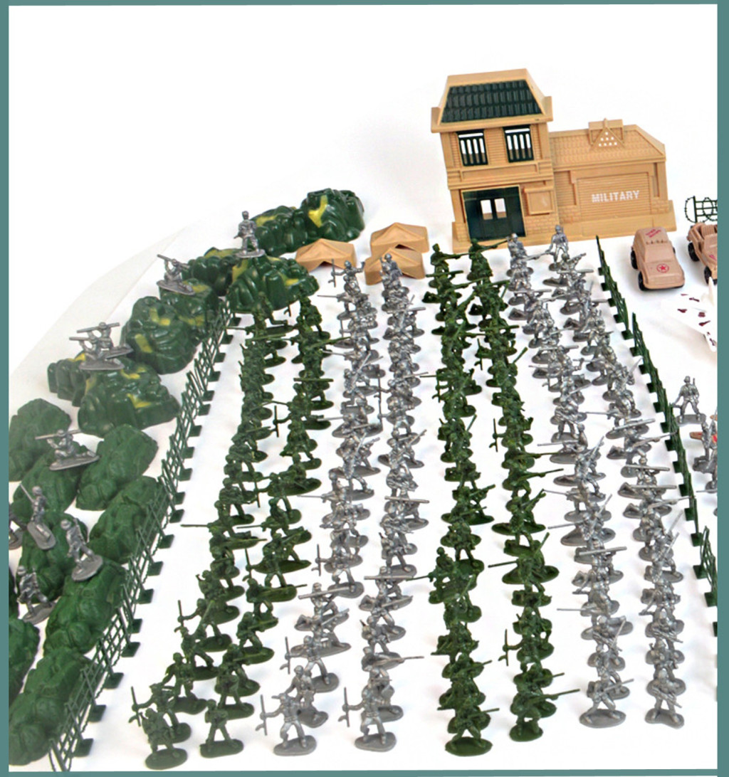 Ez a teljes katonai készlet 350 darabból áll, beleértve a kis katonákat is. Minden katona ...a legapróbb részletekre is odafigyelnek, ami nagyon valósághűvé teszi őket. Emellett a készlet tartalmaz egy katonai bázist is, amely parancsnoki központként szolgál ezeknek a kis hősöknek.