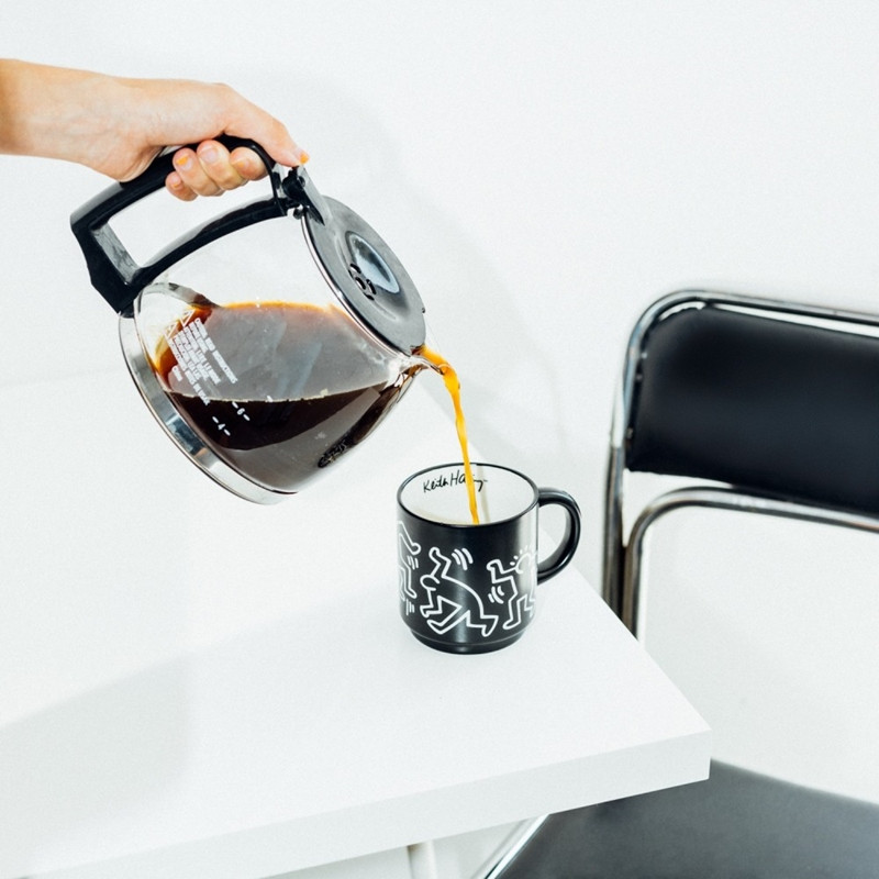 Minden bögrét dinamikus, fekete-fehér illusztráció díszíti, amely Haring jellegzetes stílusát tükrözi – tele mozgással, szimbolikával és energiával. A készlet nemcsak mindennapi használatra tökéletes, hanem dekoratív kiegészítője is lehet konyhájának, étkezőjének vagy irodájának.