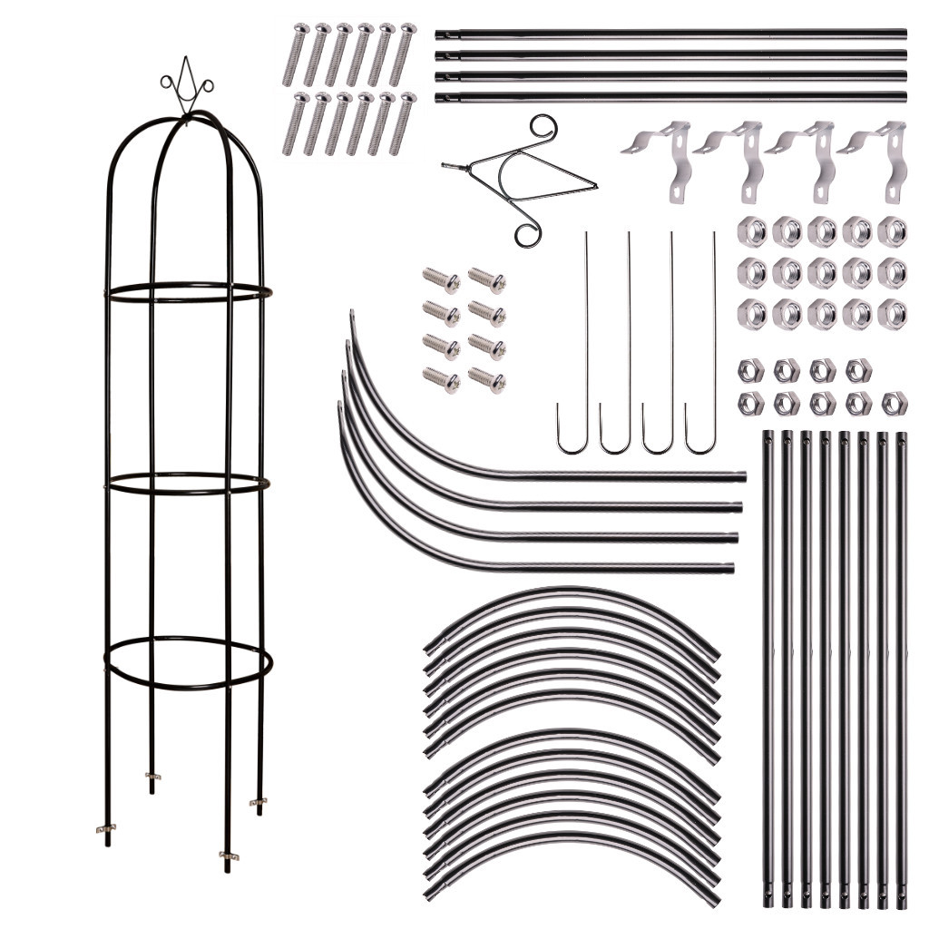 Összeszerelés után a pergola mérete 40 x 40 x 195 cm, és a készlet tartalmazza az önálló összeszereléshez szükséges elemeket, amelyek lehetővé teszik a termék gyors előkészítését a használatra.