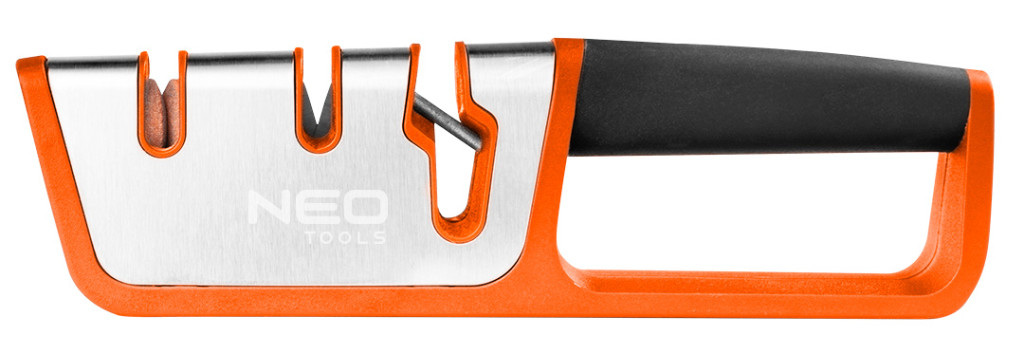 Kés- és ollóélező, ütésálló ABS műanyag házzal, részben TPR gumival és rozsdamentes acéllal bevonva. Kétlépcsős késélezés: egy volfrám-karbid előformázó és formázó fokozat, valamint egy kerámiából készült polírozó fokozat. Speciális gyémánt köszörűkorong olló élezéséhez. Csúszásmentes talp és ergonomikus fogantyú.