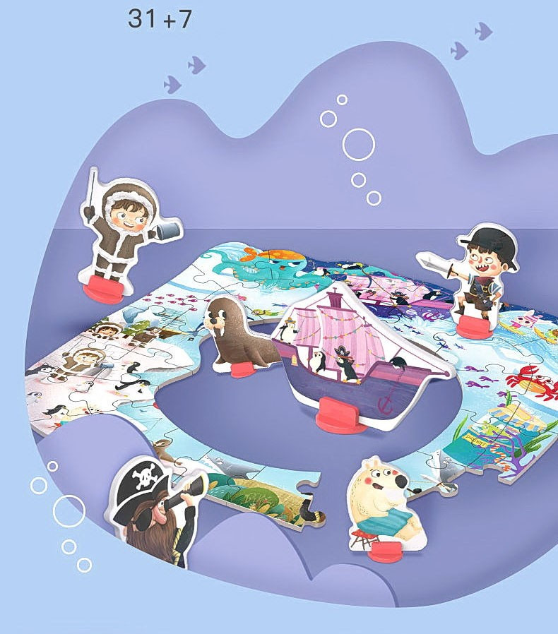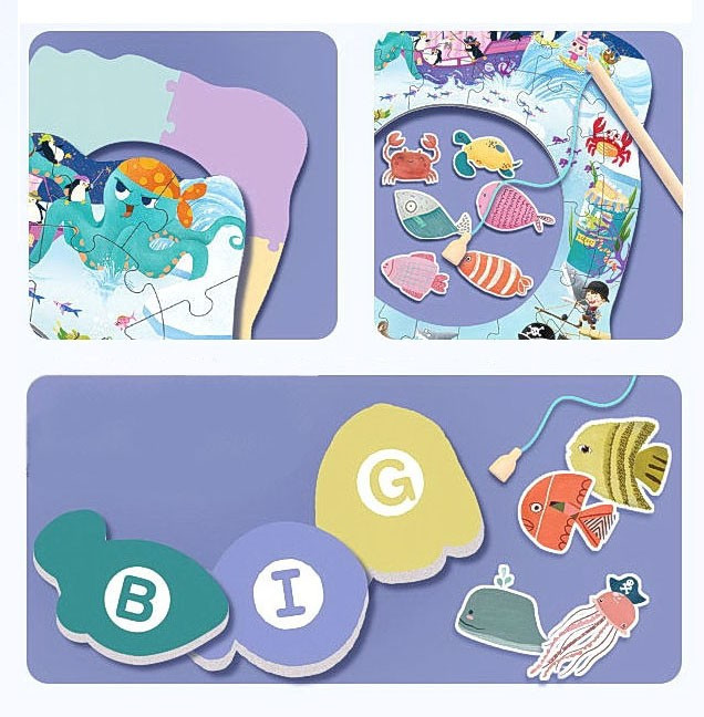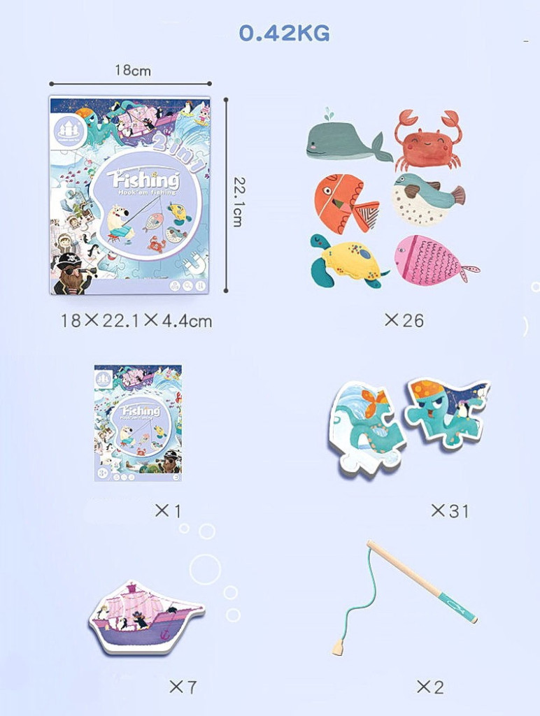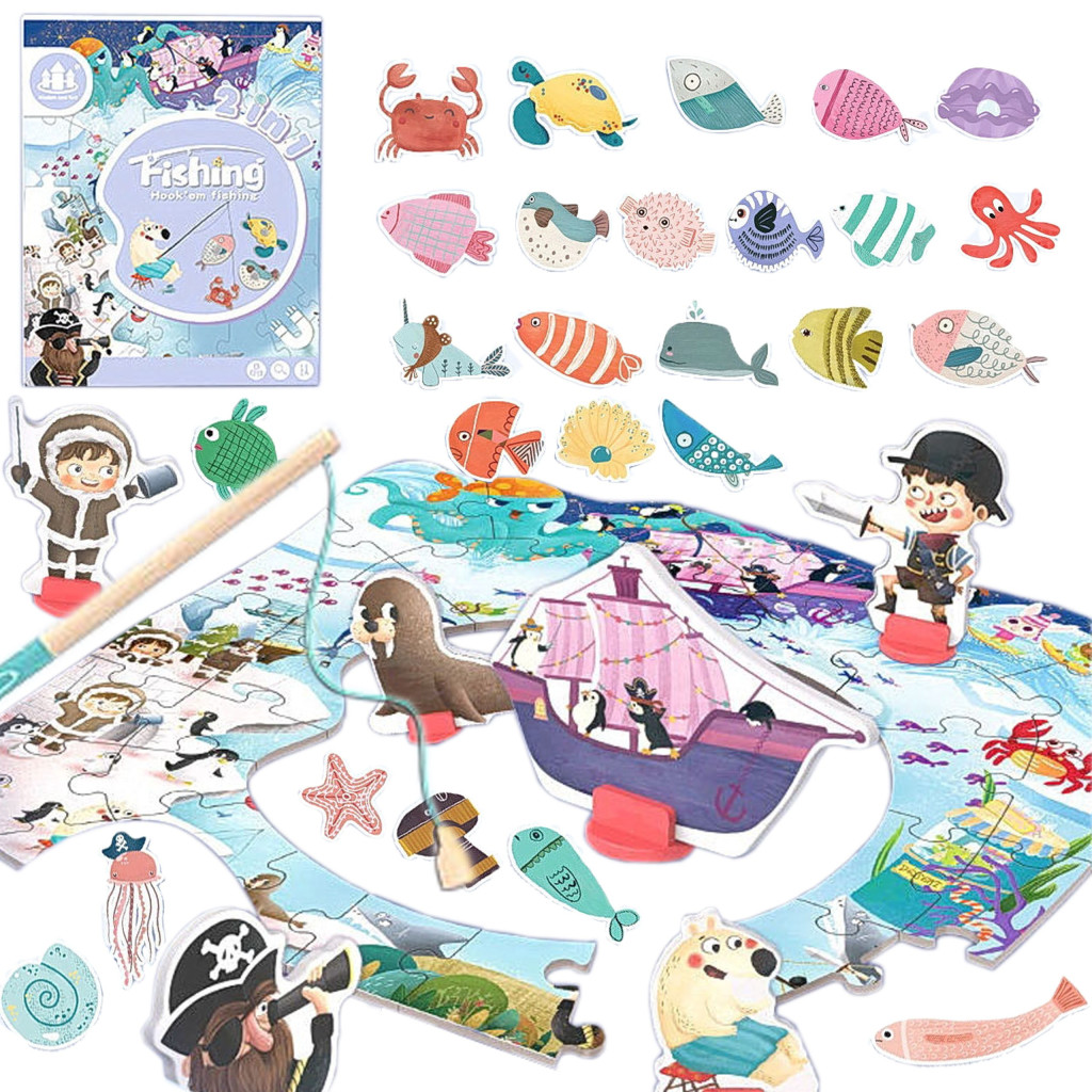 A Színes horgászat + Északi-sark kirakó egy kiváló játék gyerekeknek, amely fejleszti a szem-kéz koordinációt.