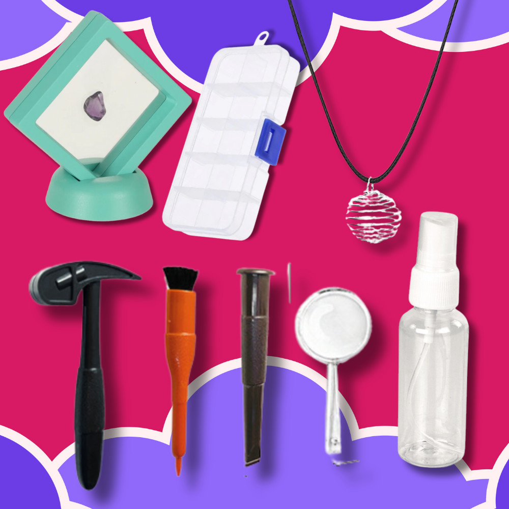A készlet speciális eszközöket tartalmaz a fosszíliák feltöréséhez, lehetővé téve a gyerekek számára, hogy önállóan fedezzék fel a rejtett köveket.