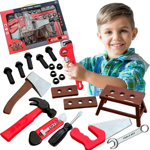 A készlet különféle szerszámokat tartalmaz, például csavarhúzót, villáskulcsot, kalapácsot és sok mást, amelyek lehetővé teszik, hogy egyszerre szórakozz és tanulj. A szerszámok masszív kidolgozása hosszú távú használatot garantál, valamint biztonságos használatot.