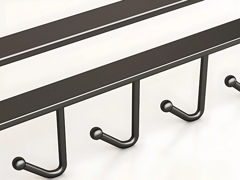 A 6 kampóval ellátott fém fogas praktikus és elegáns megoldás a konyhai rendszerezéshez. A szekrény alá történő felszerelésnek köszönhetően helytakarékos és könnyű hozzáférést biztosít a mindennapi használati eszközökhöz. Tartós fémből készült , nagyfokú deformáció- és terhelhetőség jellemzi.