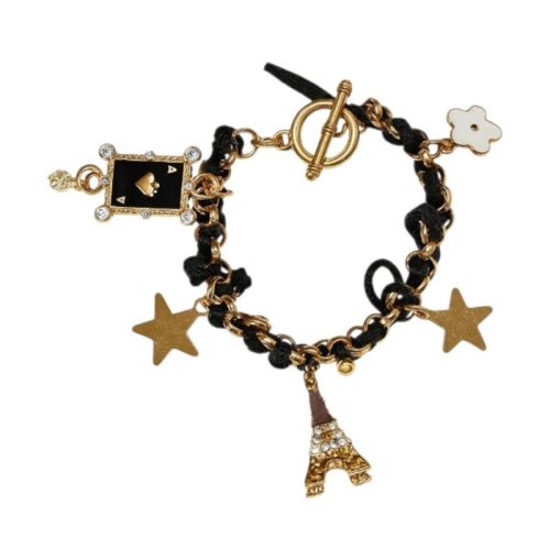 Körbetekerhető karkötő, fekete szíj, arany, medálokkal B123CZ