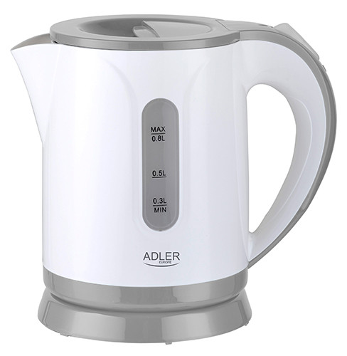 Klasszikus 0,8 literes elektromos vízforraló, amely hasznos bármilyen konyhában, irodában vagy kollégiumi szobában. Biztonságát egy biztonsági zár biztosítja, amely megakadályozza, hogy a vízforraló üres állapotban bekapcsoljon, valamint az automatikus kikapcsolás forrás után. A vízforraló üledékszűrővel van felszerelve, amely javítja a víz ízét és minőségét. Stabil alapja és könnyen leolvasható vízszintjelzője fokozza funkcionalitását. A lapos alj és a forgó talp nagyon kényelmes használatot biztosít. A vízforraló gazdaságos 850 W teljesítménnyel büszkélkedhet.