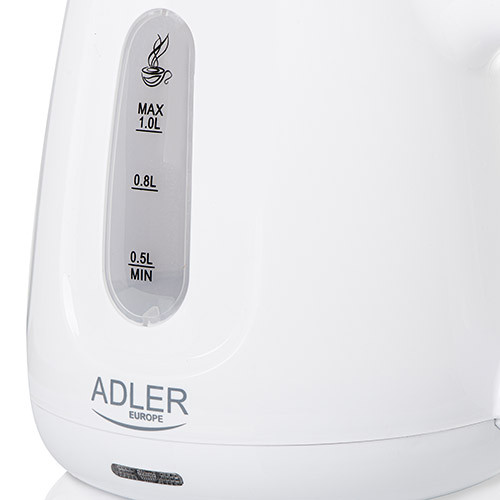 Klasszikus 1,0 literes elektromos vízforraló, amely bármilyen konyhában, irodában vagy kollégiumi szobában hasznos lehet. Biztonságát egy biztonsági zár biztosítja, amely megakadályozza, hogy üres állapotban bekapcsolja a vízforralót, valamint az automatikus kikapcsolás forrás után. A vízforraló üledékszűrővel van felszerelve, amely javítja a víz ízét és minőségét. Stabil alapja és könnyen leolvasható vízszintjelzője fokozza funkcionalitását. Lapos alja és forgótalpa nagyon kényelmes használatot biztosít. A vízforraló gazdaságos 850 W teljesítménnyel büszkélkedhet.