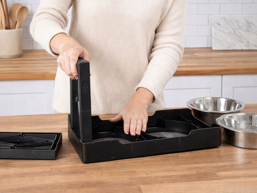 Aszilárd talp stabilan tartja a tálakat, és megakadályozza, hogy étkezés közben elmozduljanak. A szerkezetet a mindennapi használatra és a könnyű tisztításra tervezték.