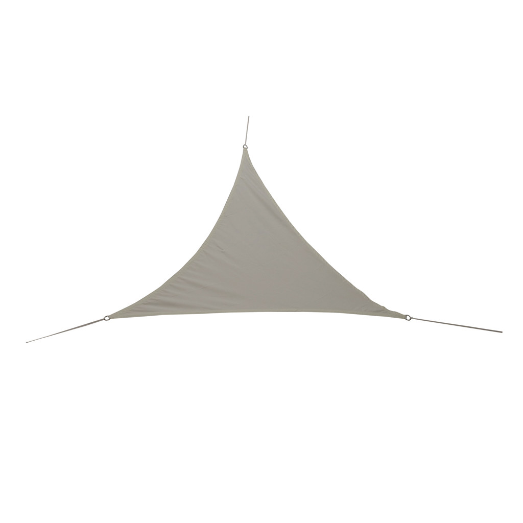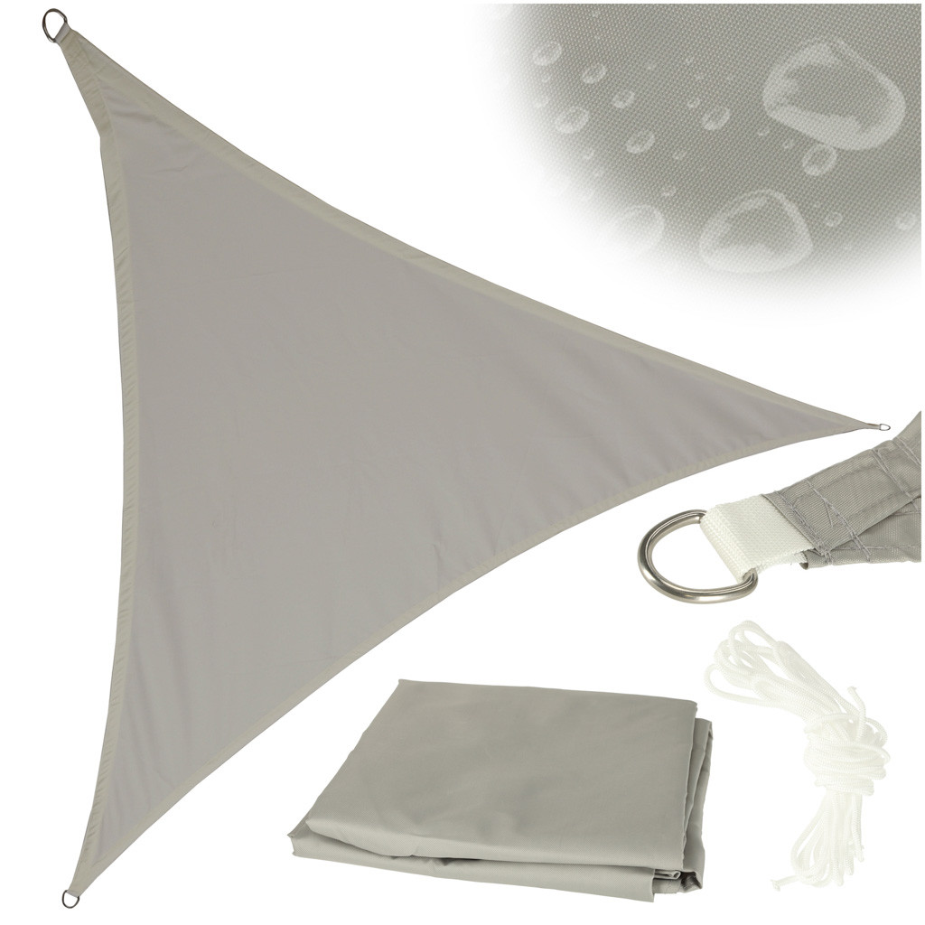 Ez a 3x3x3 méteres, háromszög alakú árnyékoló vitorla 120 g/m² PU Oxford anyagból készült, amely véd a nap, az UV-sugárzás és a könnyű eső ellen. Szürke színe, 400 mm-es H2O vízállósága, UV-védelme, megerősített szélei és három acél D-gyűrűje tartósságot és kényelmet biztosít.