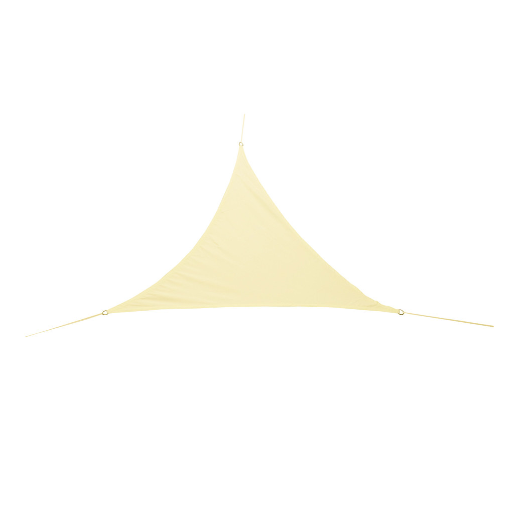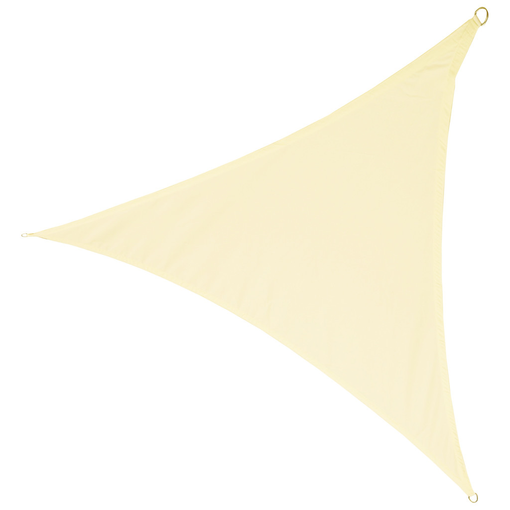 Ez a 4x4x4 méteres, háromszög alakú árnyékoló vitorla 120 g/m² PU Oxford anyagból készült, amely véd a nap, az UV-sugárzás és a könnyű eső ellen. Bézs színe, 400 mm-es H2O vízállósága, UV-védelme, megerősített szélei és három acél D-gyűrűje tartósságot és kényelmet biztosít.