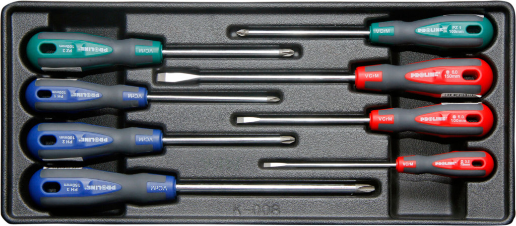 Lapos és Phillips csavarhúzókhoz való tálca, 8 db, üres