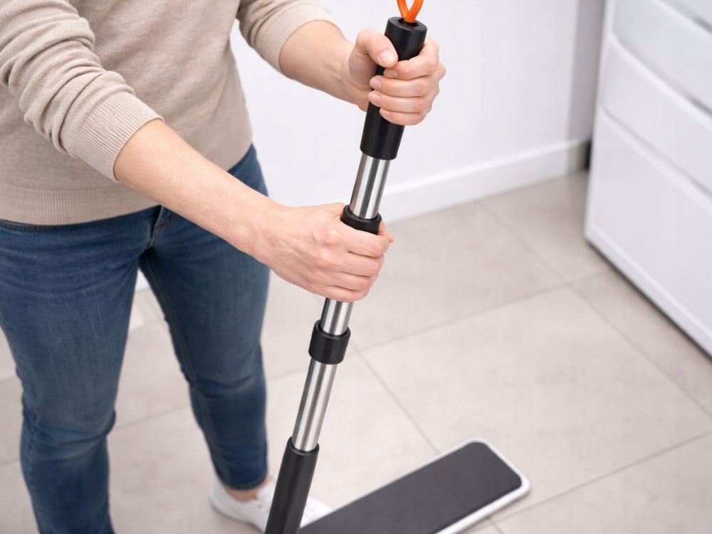 A mop összecsukható nyéllel rendelkezik, amely a felhasználó magasságához igazítható . Ez megkönnyíti a takarítást anélkül, hogy lehajolni kellene, és csökkenti a hát terhelését . Lehetővé teszi a kényelmes testtartású munkavégzést.