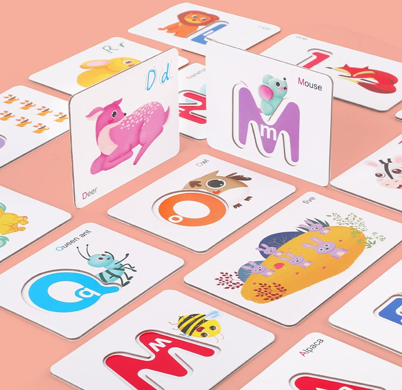 Különböző módon taníthatjuk a gyerekeket, mivel minden kártyához egy fa betűt kell párosítani, a nagyobb gyerekek pedig angol szavakat alkothatnak a fa betűkkel.