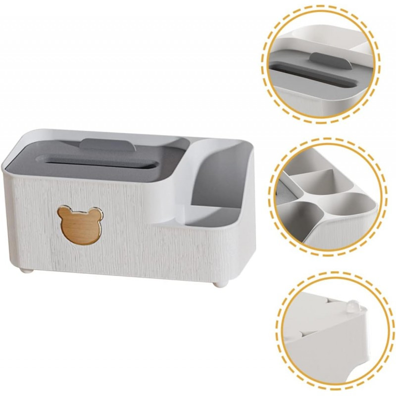 Praktikus és pótolhatatlan szervező kiegészítők és jegyzetek számára. Fehér műanyagból készült! Segít rendszerezni és feldobja otthonát. Tökéletes ajándéknak! Főbb jellemzők: - papírzsebkendő adagoló - felső rész rekeszekkel, amelyekben tollak, ecsetek, jegyzetek, kozmetikumok, parfümök, ékszerek stb. tárolhatók. Méretek: 24 cm x 17 cm x 11,5 cm Súly: 296 g Anyag: Műanyag