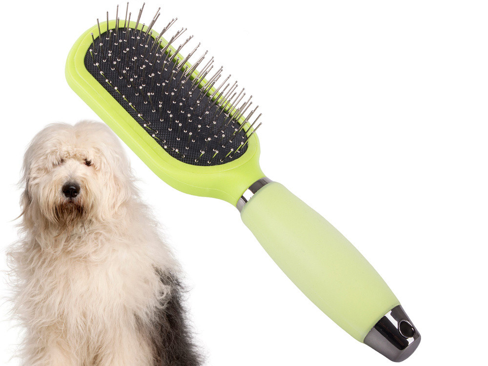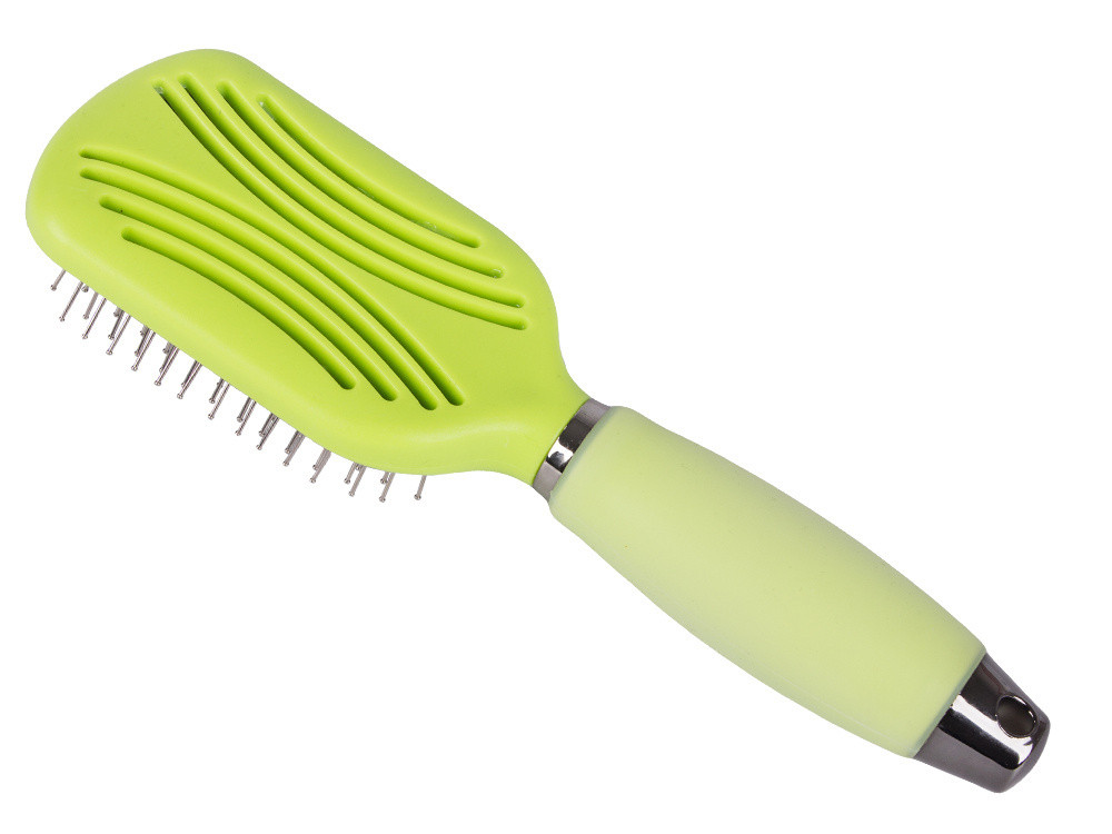 A kefe végén gömbben végződő tűk vannak , hogy ne sérüljön meg kedvence fésülködés közben, és a kifésülés élvezetes legyen. A nyél gumiból készült és nem csúszik ki a kézből.