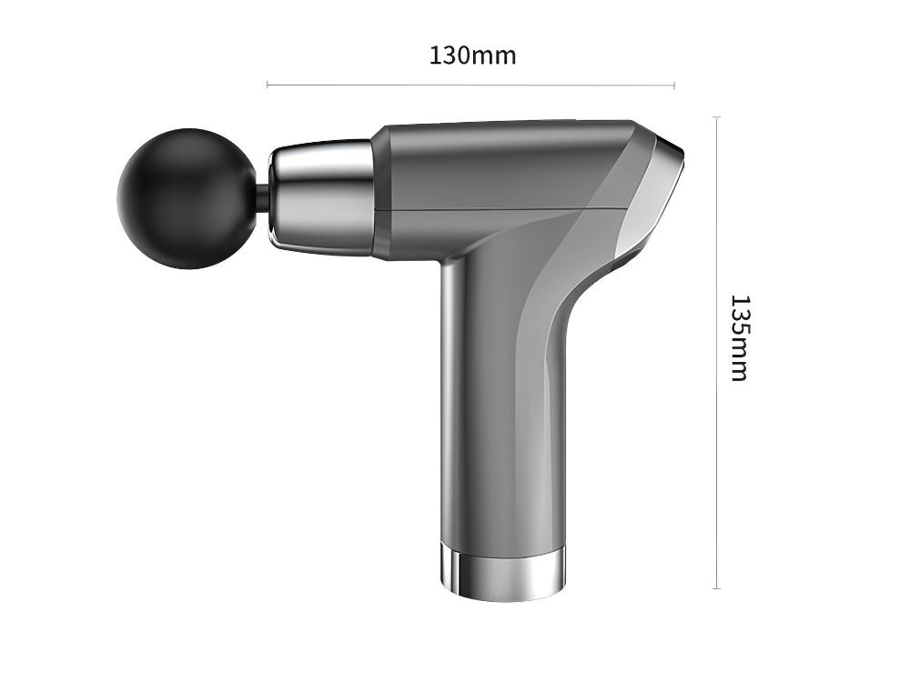 A masszírozó ergonomikus pisztoly alakú formát kapott, így tökéletesen illeszkedik a kézbe. 4 különböző hegyet tartalmaz, amelyek mindegyike más-más izomrészhez készült.