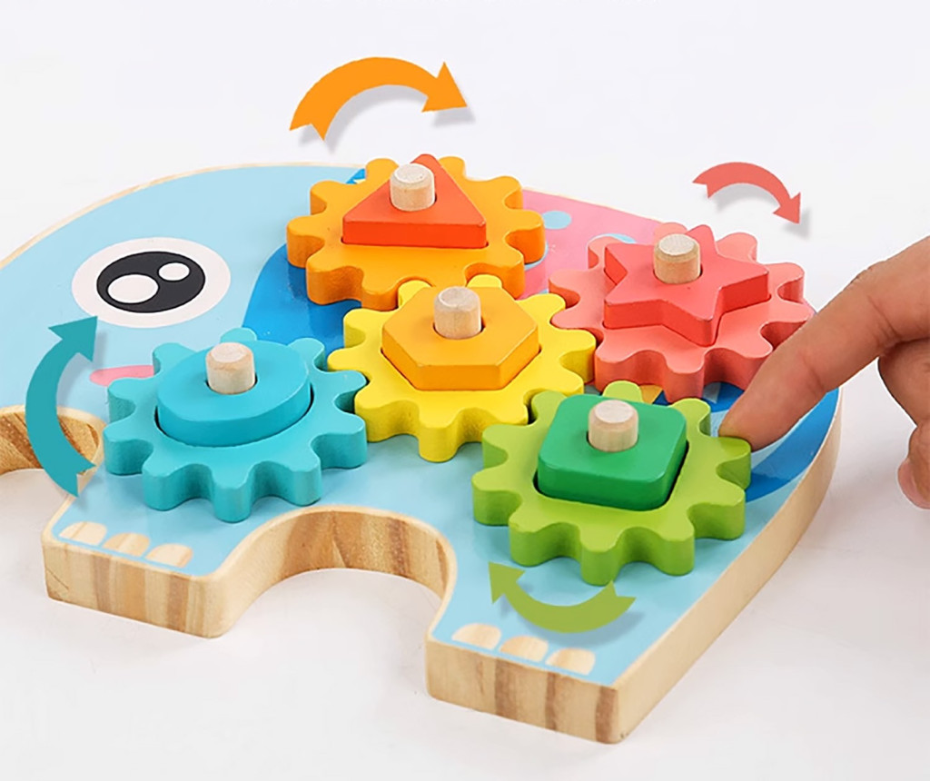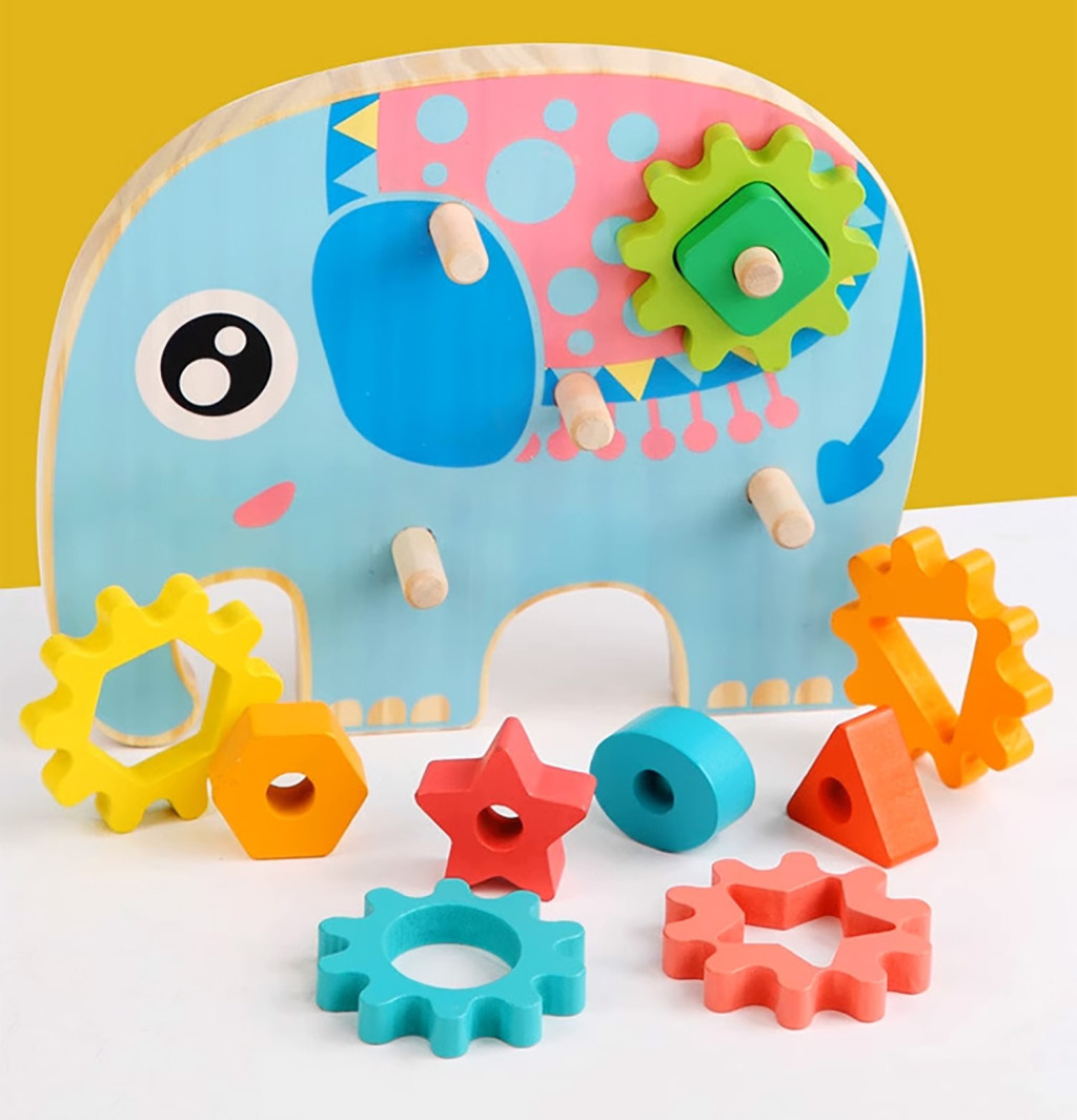 Montessori oktatási válogató elefánt fogaskerekek fa kockákkal