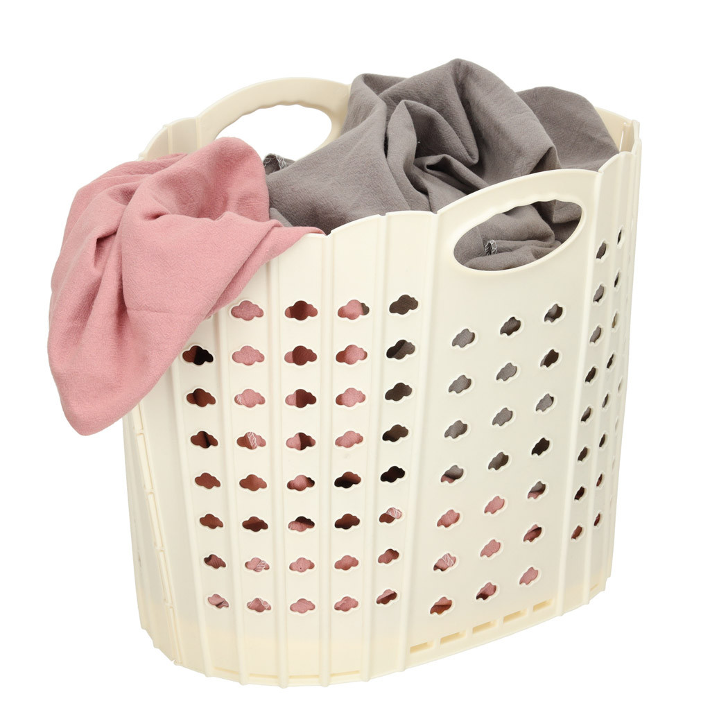 Mosodakosár, összecsukható, fürdőszobai rendszerező fogantyúval, krémszínű