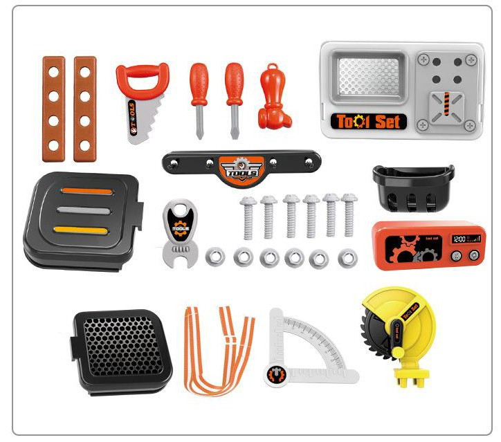 A készlet számos szerszámot tartalmaz. Ennek köszönhetően a kis ezermester mindig tud segíteni apának az otthoni javítási munkákban.