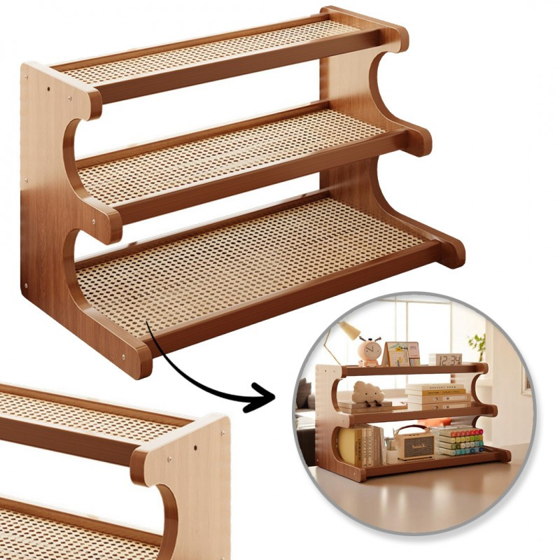 Praktikus, 3 szintes könyvespolc könyveknek és irodaszereknek. Ha kevés a hely az asztalon, ez a polc Önnek való! Specifikációk: - 3 szinttel rendelkezik a szükséges holmik egyszerű rendszerezéséhez. - Polcmagasság: 18 cm - Kiváló minőségű bambuszból és nagy sűrűségű MDF-ből készült váz - Műanyag szövésű rattanból készült asztallapok - Saját összeszerelést igényel. Méretek összeszerelés után: 19 cm x 50 cm x 31 cm. Az egyes csomagolások méretei: 50 cm x 20 cm x 4 cm. Termék súlya: 880 g nettó / 1,1 kg bruttó.
