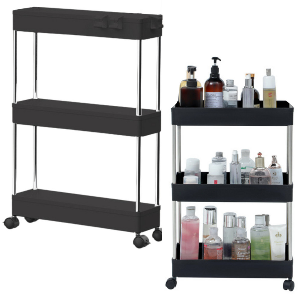 Ez a kerekeken gördülő, 3 polcos, mobil polcrendszer praktikus és elegáns kiegészítője otthonának. Jól használható a **konyhában** fűszerek és kiegészítők tárolására, valamint a **fürdőszobában** kozmetikumoknak, vagy a **nappaliban** dekorációknak és könyveknek. **A könnyű szerkezetnek** és a **könnyű mozgathatóságnak** köszönhetően könnyen alkalmazkodik a változó igényekhez!