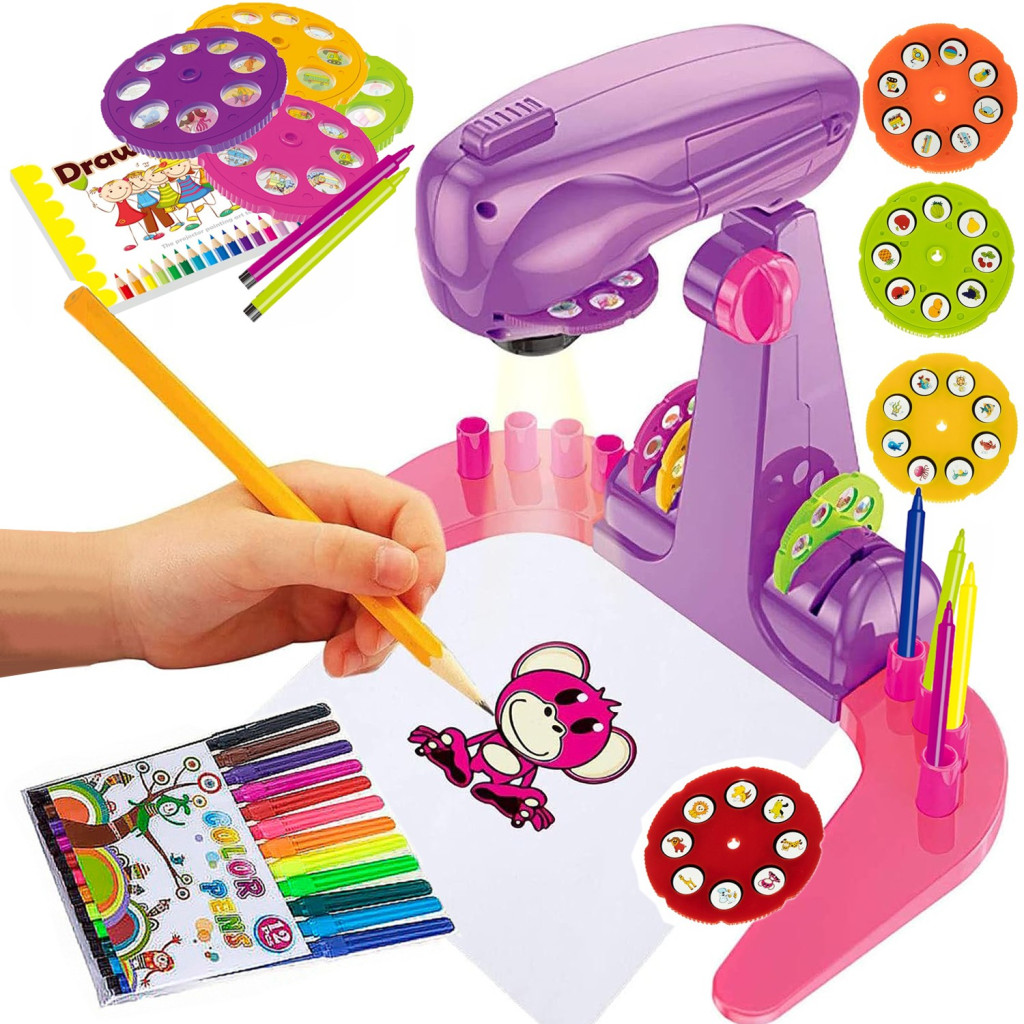 NICEKIDS oktató kivetítő rajzoláshoz, 12 filctollal, 32 mintával, 20-30cm x 34cm x 20cm