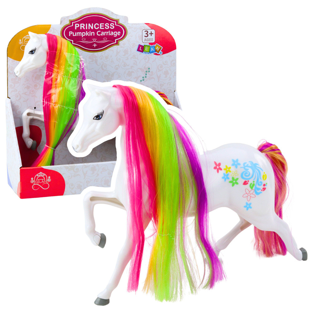 Egy bájos fehér ló hosszú, színes sörénnyel és farokkal a tökéletes játék minden kis mesevilág rajongó számára. A figurát 3 éves kortól tervezték, pasztellszínekkel és finom díszítésekkel kápráztatja el, amelyek varázslatos jelleget kölcsönöznek neki. A sörény és a farok puha, színes szálakból készült, amelyek kefélhetők és formázhatók, így a játék nemcsak vizuálisan vonzó, hanem lebilincselő is.