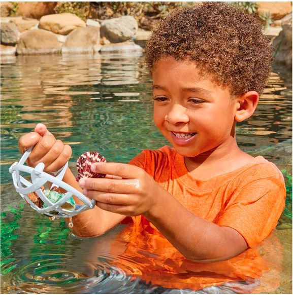 A tengeralattjáró három eszközt tartalmaz: egy víz alatti nézőt, egy vízszívót és permetezőt, valamint egy szűrőhálót. Kukucskálj a hullámok alá a víz alatti nézővel. Használd a vízpermetezőt a víz felszívásához és permetezéséhez, hogy tiszta vízben játssz. A gyerekek összegyűjthetik és felfedezhetik az összes kincset, amit a szűrőhálóval találnak.