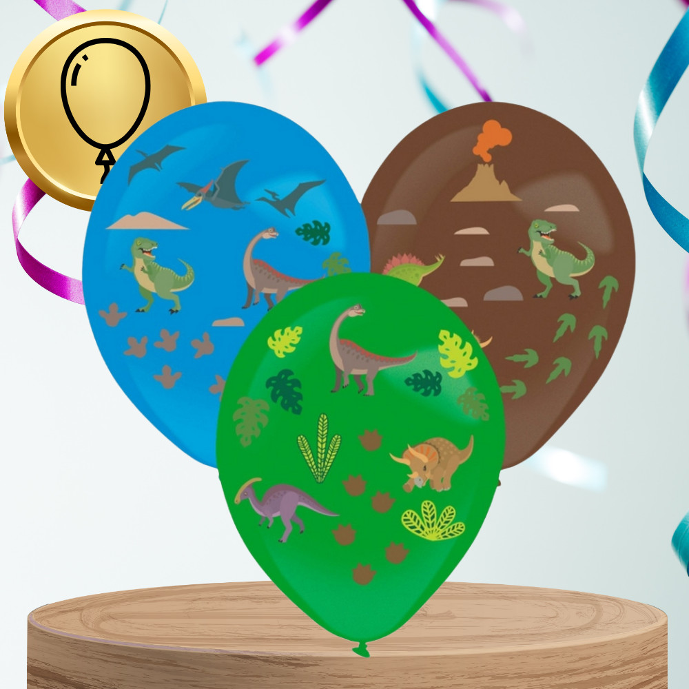 Változtasd a bulidat igazi dinoszauruszos kalanddá ezzel a klassz Amscan lufikészlettel! Három 35 cm átmérőjű, barna, zöld és kék lufi azonnal nagyszerű hangulatot teremt a bulidon vagy a tematikus rendezvényeden. A készlet 3 db klassz dinoszauruszos matricát is tartalmaz, melyek tökéletesek dekorációnak a kis felfedezők és dinoszaurusz rajongók számára!