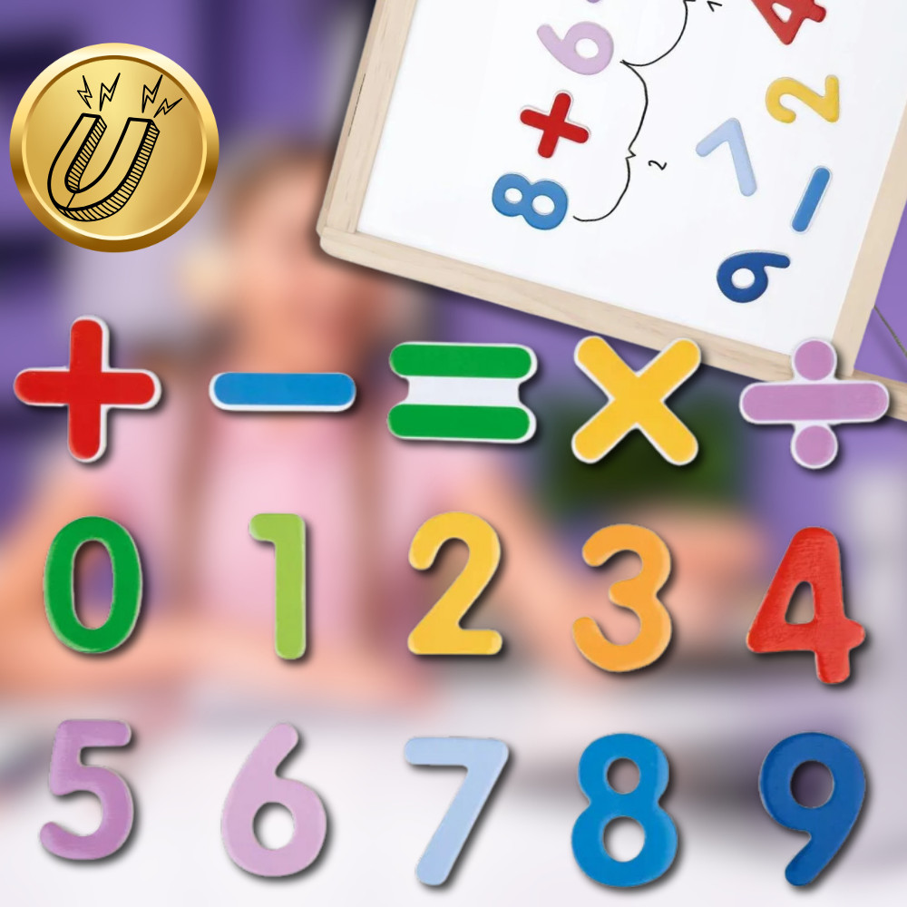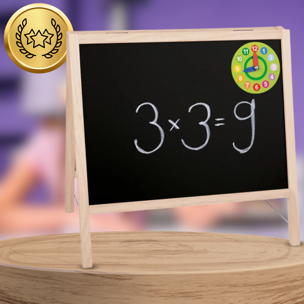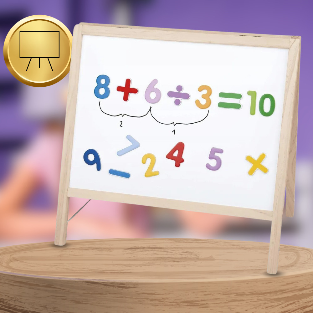 A deszka masszív és esztétikus, természetes fából készült kerettel rendelkezik, amely biztosítja a teljes szerkezet tartósságát és stabilitását. A fa keret elegáns megjelenést kölcsönöz a táblának, miközben környezetbarát, így ideális választás egy gyerekszobába.
