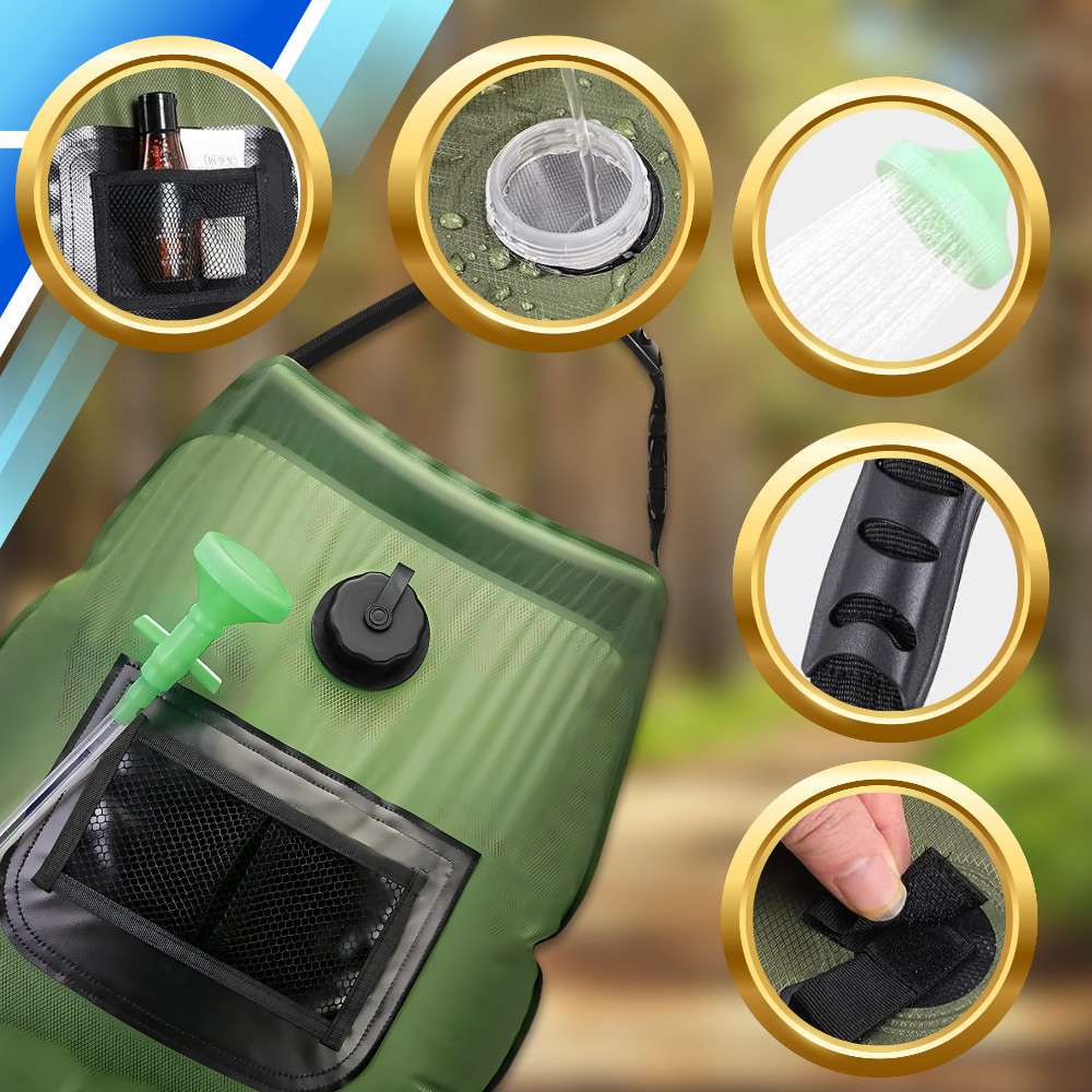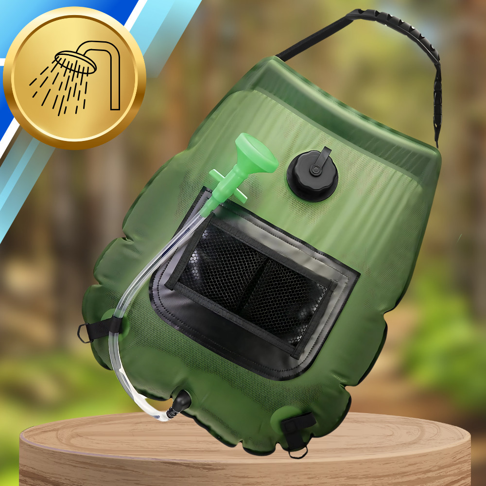 Bemutatunk egy 20 literes hordozható utazózuhanyt, amely ideális kempingezéshez, túlélő túrákhoz és bárhol, ahol korlátozott a folyóvízhez való hozzáférés. Napenergiával fűtött víztartályunk könnyen használható és szállítható, így tökéletes társ minden utazó számára.