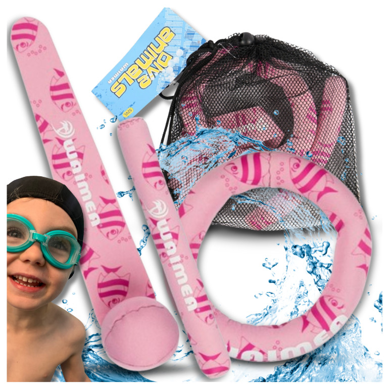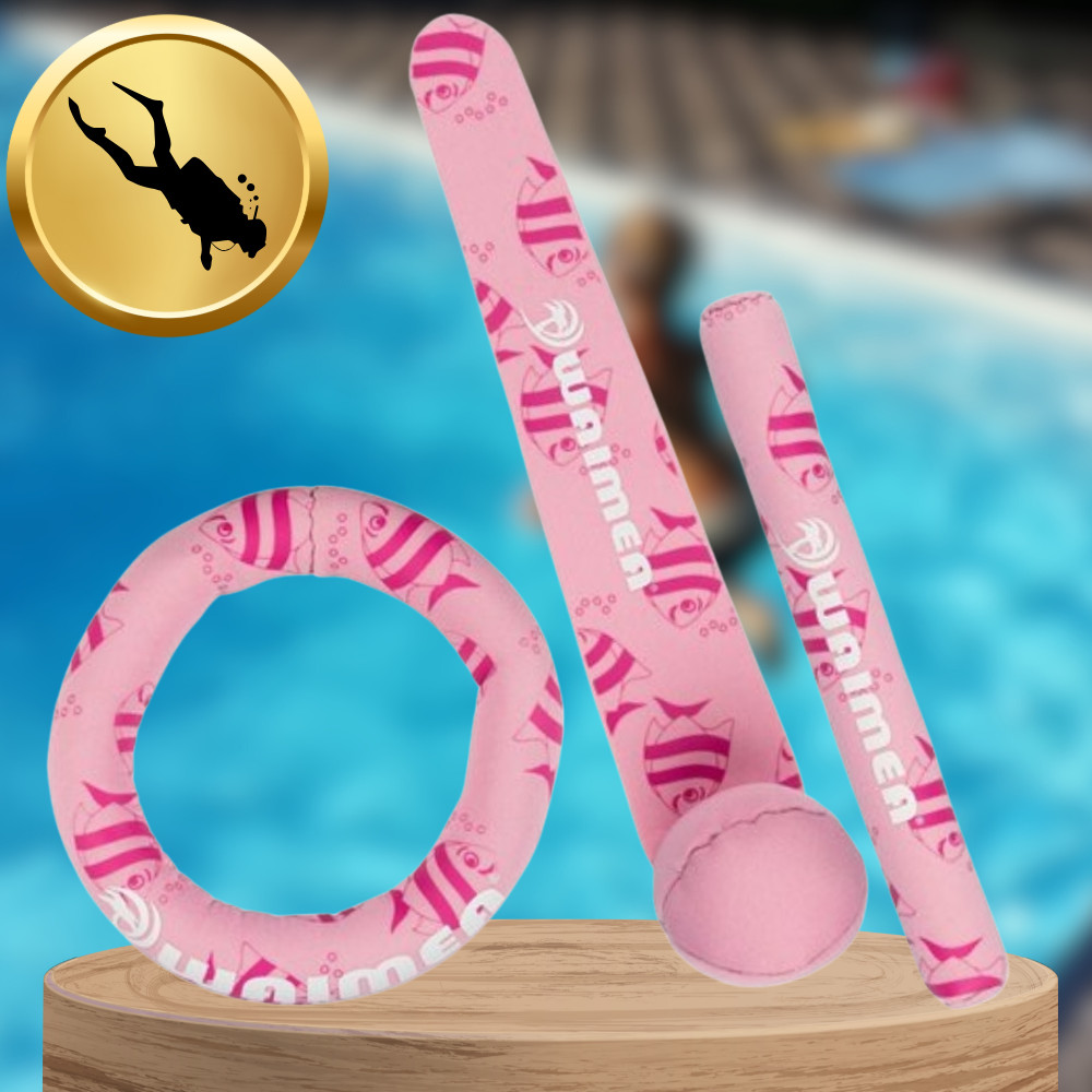 ✅A három darabos WAIMEA neoprén mosdókagyló-készlet tökéletes játék az úszás és a búvárkodás tanulásához. Homokkal feltöltve a mosdókagylók gyorsan lesüllyednek az aljára, így a gyerekek remekül szórakozhatnak a vízben, miközben búvártechnikákat tanulnak. A készletben található, különböző színű botok nagyszerű választást jelentenek a kicsik számára, akik fejleszteni szeretnék vízben való jártasságukat.