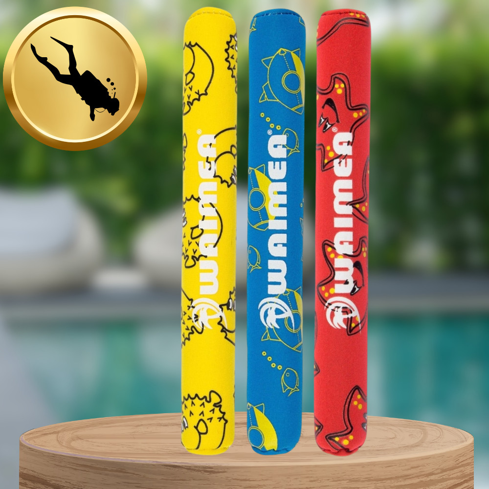 ✅A három darabos WAIMEA neoprén botkészlet tökéletes játék az úszás és a búvárkodás tanulásához. Homokkal töltve a botok gyorsan lesüllyednek az aljára, így a gyerekek remekül szórakozhatnak a vízben, miközben búvártechnikákat tanulnak. A készletben található színes botok nagyszerű választást jelentenek a kicsik számára, akik fejleszteni szeretnék vízben való jártasságukat.