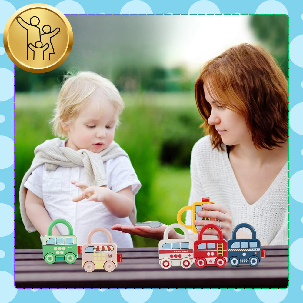 Logikai játék gyerekeknek - 6 lakat alakú autó kulccsal!✨