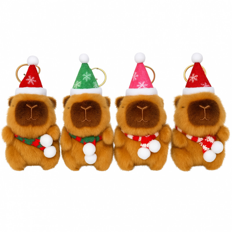 Plüss karácsonyi kapibara kulcstartó 1 db. VÉLETLENSZERŰ SZÍN BRL394