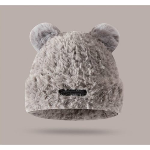 Plüss téli sapka mackó fülekkel, puha és meleg, folttal, szürke Nagyon meleg és rugalmas sapka Tökéletes téli stílushoz Tökéletes divatos kiegészítőként vagy fejfedőként téli fizikai aktivitáshoz Méret: univerzális Összetétel: 100% akril