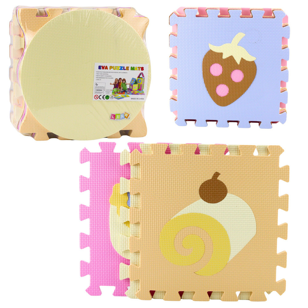 Puha Puzzle Oktatószőnyeg EVA Hab Gyümölcsök Édességek Pasztell 16 db.