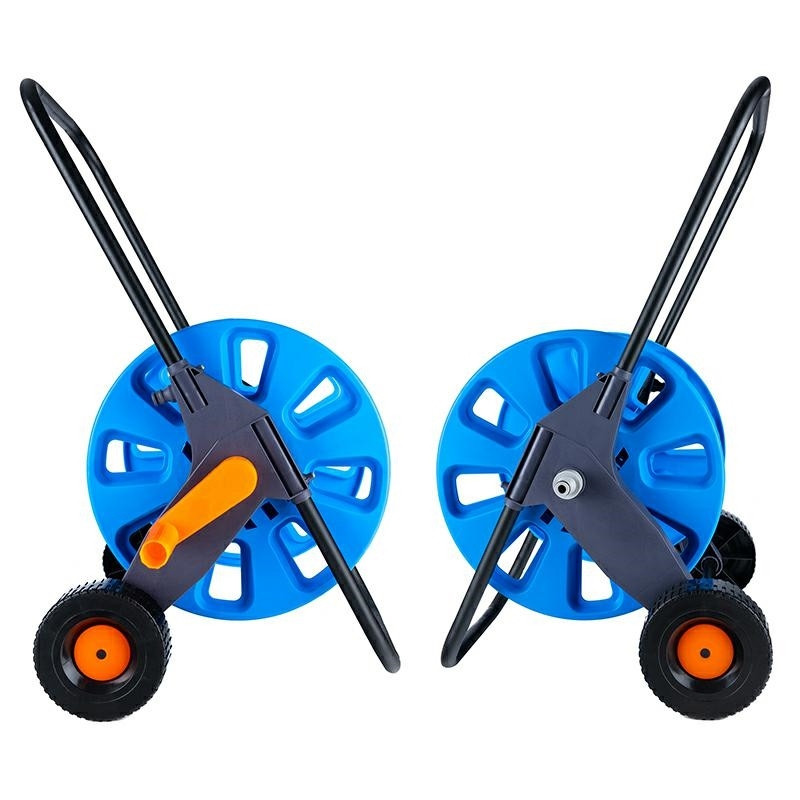 Kiváló minőségű, összecsukható 50 m-es kerti tömlőtartó kocsi. Praktikus, könnyű és tartós, a legmagasabb minőségű, ellenálló PVC-ből készült. Tekercselő a visszatekeréshez. Tömlőcsatlakozás 1/2"-os csatlakozóval. Termékjellemzők: - egyszerű összeszerelés és használat - könnyű és tartós konstrukció a könnyű munkavégzés és szállítás érdekében - időjárásálló - a kényelmes, szabadon forgó tekerő megakadályozza a tömlő csavarodását és megtörését - ideális gumi és szövet tömlőkhöz - tömlőhossz akár 50 m, vastagságától függően - tömlőcsatlakozás 1/2"-os csatlakozóval - méretek (magasság/szélesség/mélység): 69x39x39cm, csomagolási méretek: 43x36x14cm, raklaponkénti mennyiség: 60 db