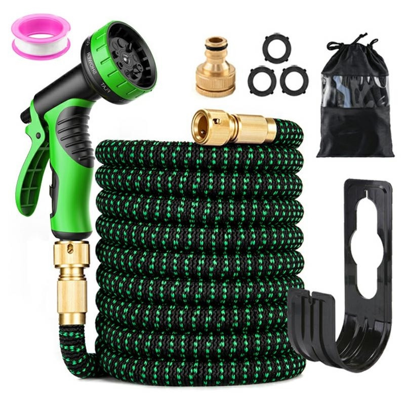 Kiváló minőségű, flexibilis kerti tömlő 10 funkciós szórópisztollyal. A tömlő kiváló minőségű, rendkívül ellenálló PVC anyagból készült, ami hosszú és problémamentes működést biztosít. Ez a tömlő tökéletes teraszok és erkélyek növényeinek öntözésére, vagy kisebb területek, például házikertek permetezésére. Termékjellemzők: - maximális hosszúság 22,5 m (a maximális tömlőhossz a víznyomástól és a hőmérséklettől függ) - minimális hosszúság 7,5 m - 10 funkciós szórópisztollyal együtt - kiváló minőségű kidolgozás - a tömlő sárgaréz gyorscsatlakozókkal végződik - anyag: TPE + 2500D poliészter + sárgaréz A készlet tartalma: tömlő, teflonszalag, tartalék tömítések, szórópisztoly, akasztó. A termék fóliazacskóban csomagolva, szállításra készen. Raklaponkénti mennyiség: 240 db