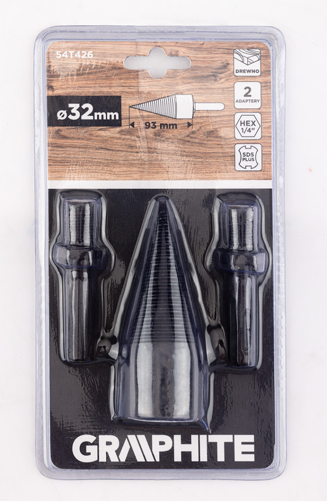 SDS Plus fahasító fúrószár, fúróátmérő 32 mm, teljes hossz 93 mm, 2 adapter: 1/4 Hex, Sds Plus